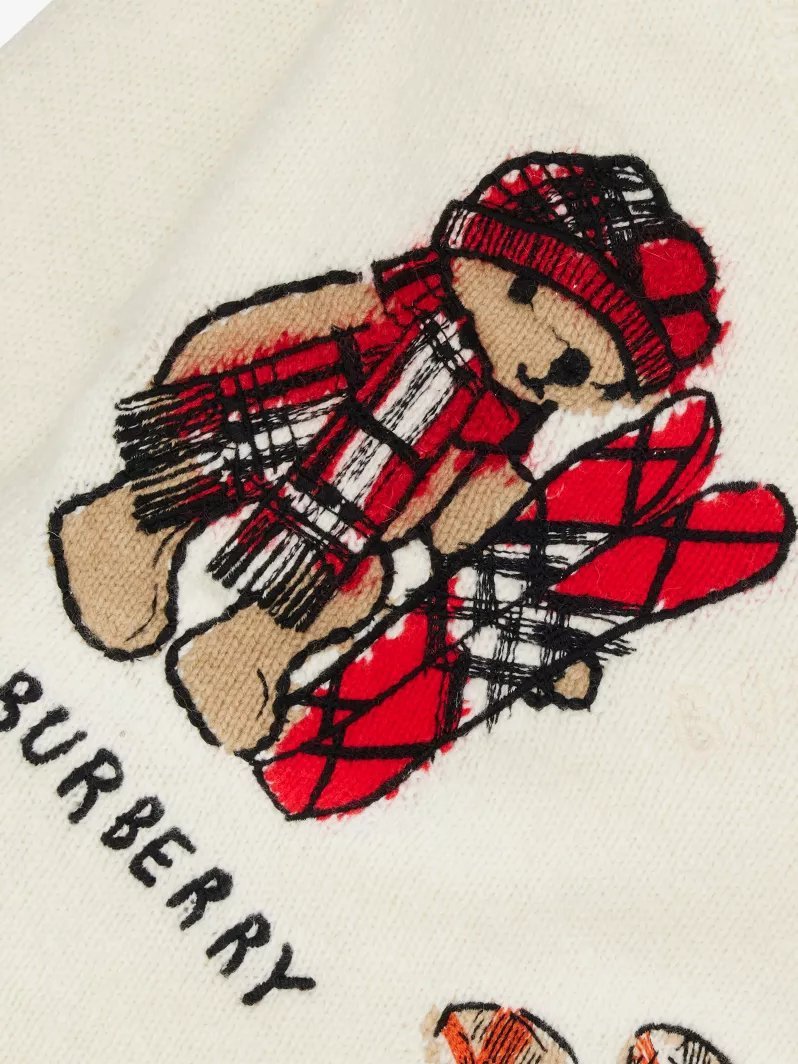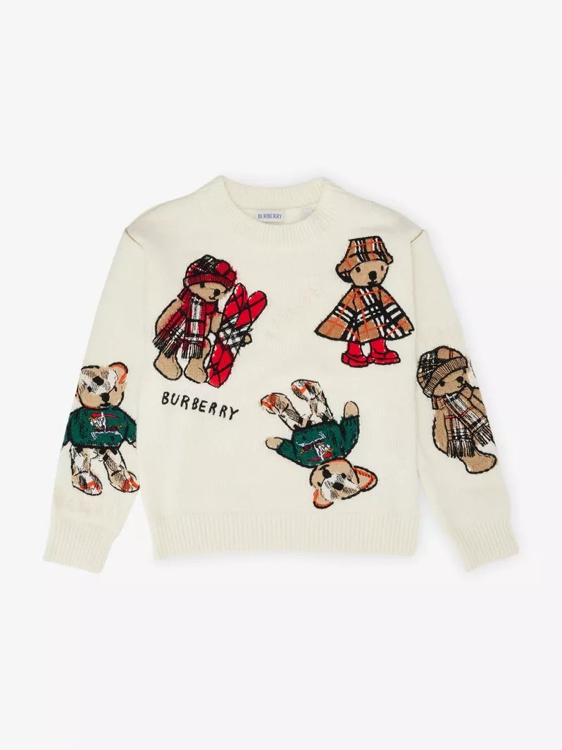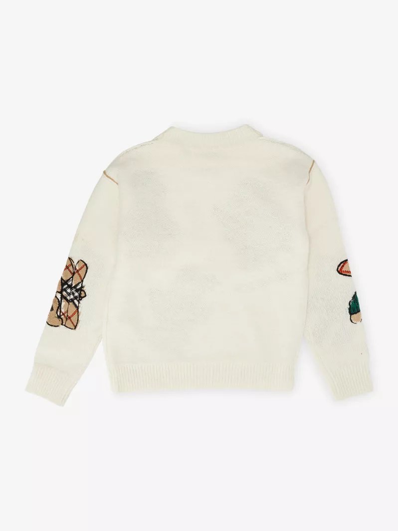 A crew-neck sweater in a soft wool cashmere blend. The cosy design is intarsia-knitted with our Thomas Bear dressed in cosy Burberry Check coats and accessories.