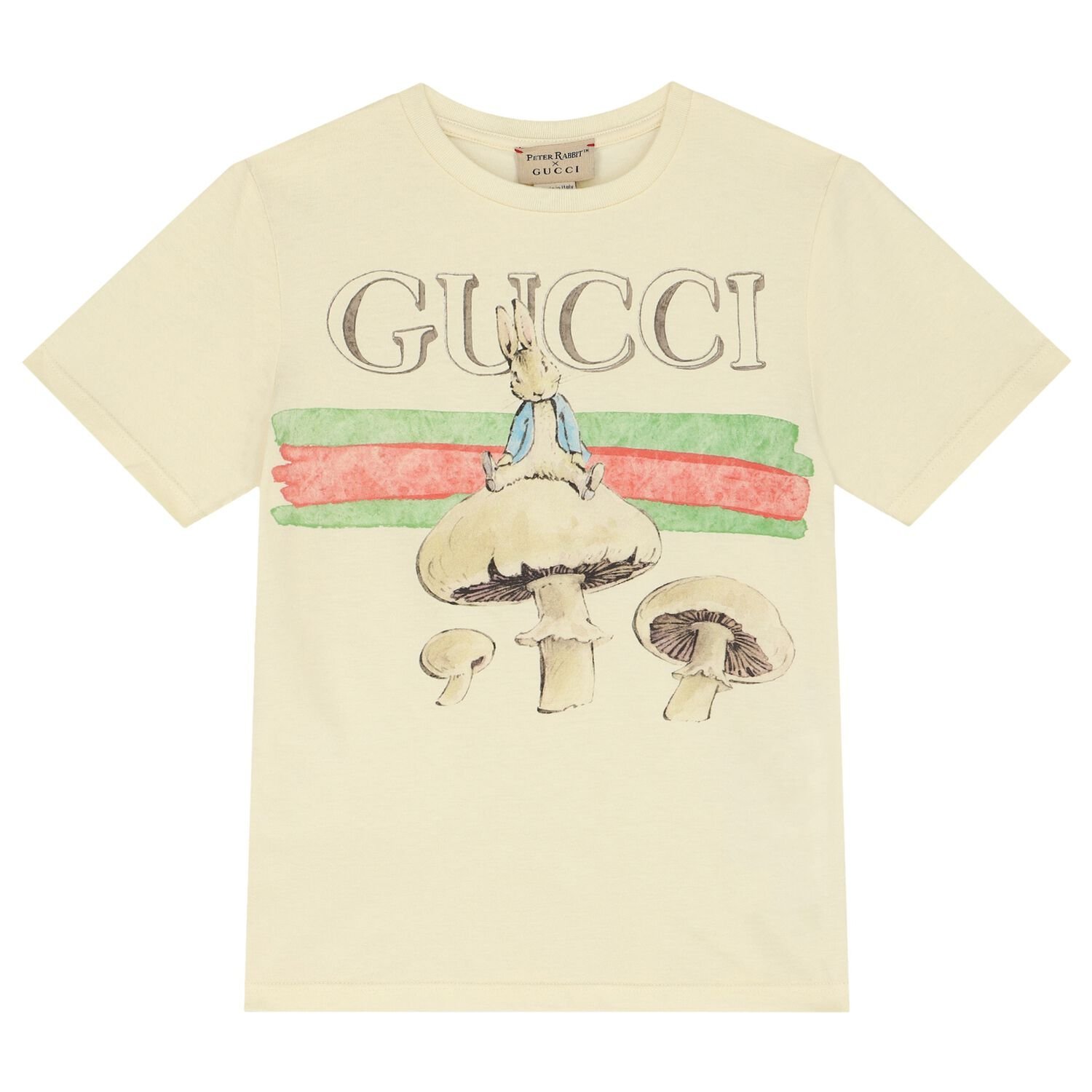 From bright reds to ivory hues, there is something for every little one looking for an adventure. This cotton T-shirt is defined by a Gucci Interlocking G stripe print.